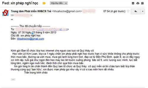 Cụ bà viết đơn xin nghỉ học vì… “đường xa ướt mưa“
