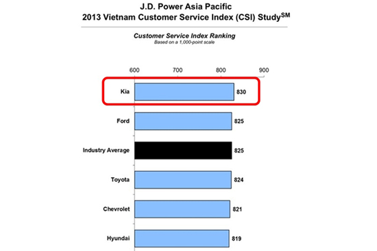 Theo công ty nghiên cứu thị trường J.D Power (Singapore), Kia Việt Nam (Thaco Kia), từ vị trí thứ ba vào năm ngoái vươn lên vị trí thứ nhất trong năm nay, với số điểm cao nhất 830 điểm (trên thang đánh giá 1.000 điểm) về chỉ số thỏa mãn của khách hàng (Customer Service Index-CSI), để trở thành hãng xe có chất lượng dịch vụ sau bán hàng tốt nhất Việt Nam.