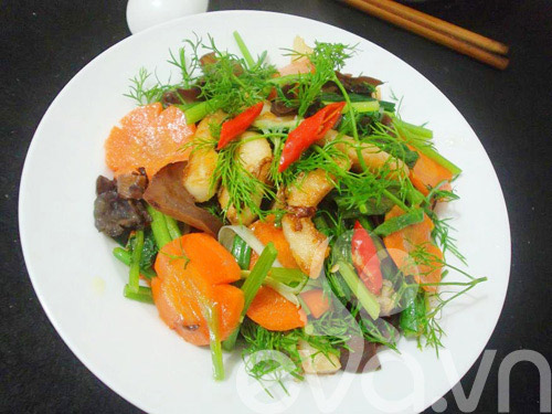 - Cá xào cần tỏi rất hợp cho bữa cơm ngày lạnh.