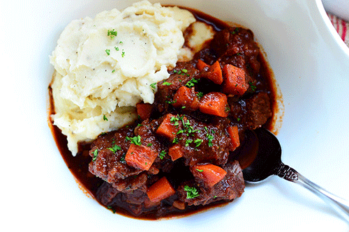 - Có thể ăn kèm thịt hầm với khoai tây chín nghiền.