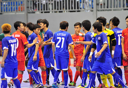 Trận chung kết giữa đội tuyển futsal Việt Nam và Thái Lan (nam) chiều nay đã diễn ra với không khí vô cùng căng thẳng. Đặc biệt sau khi trận đấu kết thúc, 2 đội đã có màn ẩu đả nhau ngay tại nhà thi đấu... Sau khi đội nữ Việt Nam để thua 0-5 trong trân chung kết nữ trước Thái Lan, các đồng nghiệp nam Việt Nam quyết tâm đòi nợ, khi bước vào trận chung kết cũng với đối thủ Thái Lan.