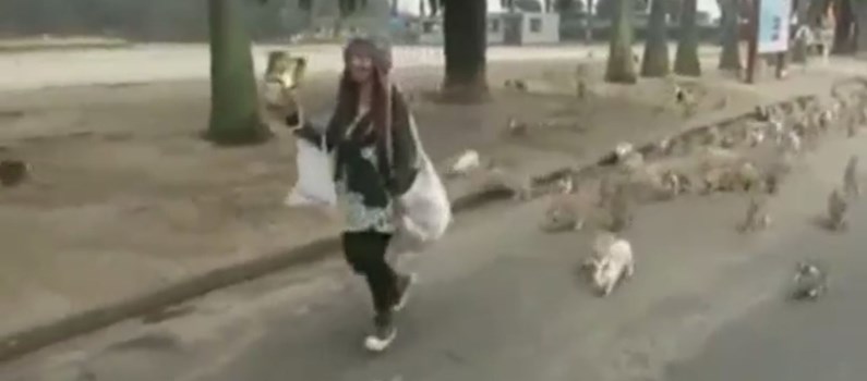 Hàng trăm con thỏ đuổi theo một người phụ nữ trên một con đường trong một công viên ở Nhật Bản. Yu Yu Lam Lam, người đã tải đoạn phim lên Facebook cho biết có thể những con thỏ nghĩ chiếc túi cô đang mang trên người là thức ăn dành cho chúng.