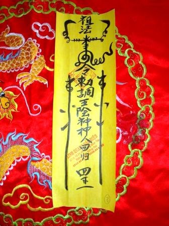 Phải thuyết phục lắm, chúng tôi mới được ông T. cho phép vào tham quan căn phòng nơi ông nghiên cứu và thực hành bùa pháp. Căn phòng nhỏ đốt nhang trầm nghi ngút. Ở chính giữa là bàn làm việc có mực tàu và giấy vẽ bùa. Xung quanh bốn bức tường là 8.000 đầu sách đủ thứ tiếng chuyên về bùa ngải. Trên các bức tường treo nhiều ảnh mà theo ông là cao tổ của các trường phái bùa ngải. Tất cả đều là người Trung Quốc, Thái Lan hoặc Ấn Độ. Theo lời ông, bùa ngải chỉ là một trong những hình thức khai triển huyền thuật, ngoài ra còn có trù ếm, thần thông, thôi miên…