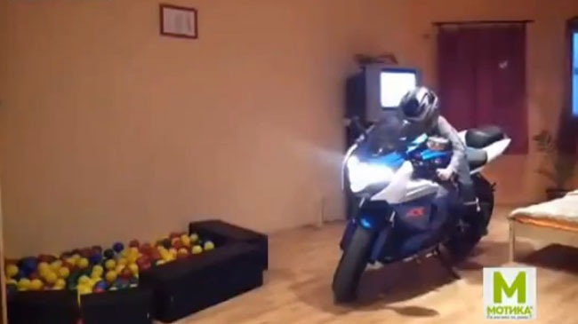 Đoạn video mở đầu bằng cảnh cô bé đang nghịch với đống bóng nhựa đủ màu sắc. Có lẽ đã chán nghịch bóng, cô bé liền để ý đến chiếc Suzuki GSX đang đỗ trong phòng và nảy ra ý tưởng khá liều lĩnh.