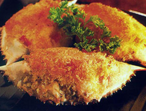 Khi bày ăn, người ta cắm chân cua đã luộc chín vào mai giống như cua đang sống, nhưng mùi vị thơm quyến rũ của cua, thịt, hành, và gia vị trộn với nhau khiến du khách ăn một lần nhớ mãi.