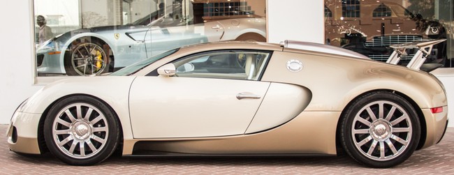 Chỉ có ba siêu xe Bugatti Veyron được xuất xưởng với tông màu vàng và trắng ngọc trai, một trong số đó đang được rao bán tại Dubai.
