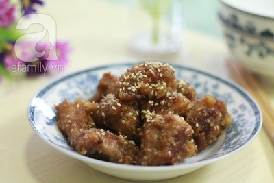 Khi xốt đặc lại thì thêm vừng vào đảo cùng khoảng 2 phút, nêm nếm lại cho vừa ăn rồi tắt bếp.