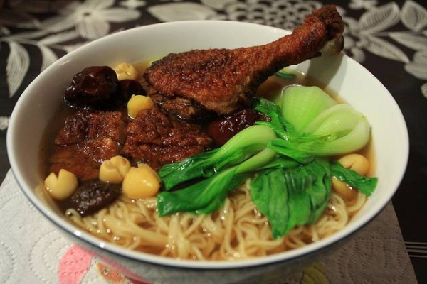 Mì vịt tiềm ở Sài Gòn không giữ nguyên bản với nơi xuất xứ, mà được chế biến cho phù hợp với khẩu vị của người Việt. Nước dùng ngọt mà không béo, thịt vịt giòn, mềm mà không tanh.