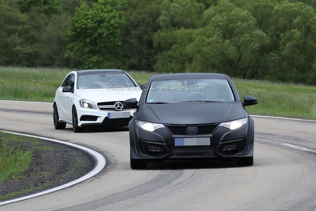 Honda Civic Type-R 2015 phiên bản sản xuất bị bắt gặp khi đang thử nghiệm cùng với một số mẫu xe hatchback tính năng cao khác như Mercedes-Benz A45 AMG, Renault Megane RS và Volkswagen Golf R. Địa điểm thử nghiệm là trung tâm kỹ thuật của hãng Honda tại châu Âu.