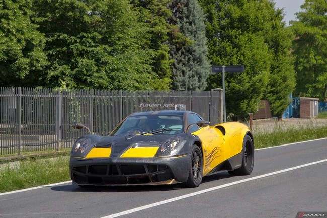 Một chiếc Pagani Huayra màu đen cũng "bị tóm" khi đang kiếm tra, thử nghiệm tại nhà máy của Pagani, trước khi chiếc xe được bàn giao cho khách hàng tại Mỹ. Ngoài thân xe mang tông màu đen, hầu hết các chi tiết khác như la-zăng, hệ thống phanh, cánh gió cũng đều có màu đen, chiếc xe cũng được trang bị gói tùy chọn thể thao.