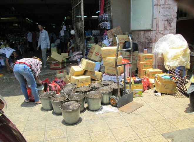 Nhưng, anh Trần Văn Cẩn, bán hàng hải sản chợ Đồng Xuân, hàng ngày chứng kiến cảnh nhập hàng thạch đen lại lắc đầu: “Vào các buổi sáng khi nhập hàng về, các xô thạch đen chổng chơ phơi ở cổng chợ. Ban đầu nhìn mặt xô sủi bọt trắng, bụi bẩn thì không ai nghĩ đó là thạch đen có thể ăn được”, anh cho biết.