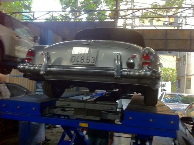 Hình ảnh chiếc Mercedes-Benz 190SL Roadster mang biển kiểm soát TP.HCM xuất hiện trong một garage sửa xe đang được lan truyền nhanh trên Facebook.