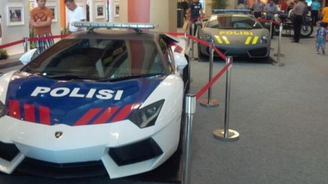 Lực lượng cảnh sát tại Indonesia hiện đang sử dụng hai chiếc siêu xe Lamborghini làm xế tuần tra, đó là Aventador LP700-4 và Gallardo.