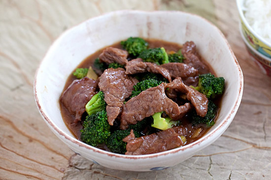 Cho nốt chỗ dầu ăn còn lại vào chảo, thêm gừng vào đảo đều đến khi thơ, cho chỗ thịt bò đã xào vào đảo đều đến khi thịt chín hẳn, khoảng 1-2 phút. Trút hoa lơ và nước sốt vào đảo đều, cho gia vị thấm đều với nhau và nước sốt đã sánh lại thì trút ra đĩa. Món này ăn nóng với cơm trắng hoặc mì rất ngon.
