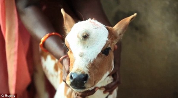 Với con mắt thứ ba mọc ở giữa trán, chú bê con mới chào đời ở một ngôi làng ở thị trấn Kolathur, bang Tamil Nadu, phía Nam Ấn Độ lại được dân làng nơi đây tôn sùng và ngưỡng mộ.