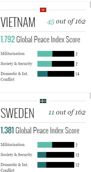 Bảng danh sách xếp loại các quốc gia an toàn nhất thế giới được đưa ra dựa trên 2 chỉ số: An toàn và Hạnh phúc (chỉ số được đánh giá dựa trên chỉ số hòa bình toàn cầu (Global Peace Index)).