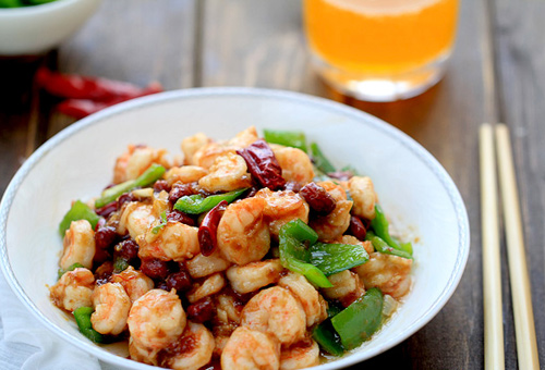 Sau đó, cho ra tôm xào lạc cay đĩa thưởng thức với cơm nóng.