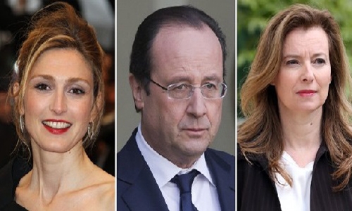 Tổng thống Francois Hollande và 2 người tình, nữ diễn viên Julie Gayet (trái) và Valerie Trierweiler (phải) (Ảnh: AFP)