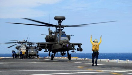 Cuộc tập trận lần này sẽ huy động 4 trong số 8 trực thăng Apache model E đã từng thực hiện hạ cánh trên tàu sân bay trong tập trận RIMPAC vừa qua.
