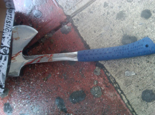 Đột nhiên, một người đàn ông mang theo một chiếc rìu nhảy bổ vào tấn công nhóm cảnh sát, bổ rìu vào tay phải một sĩ quan và tiếp tục vung rìu lên giáng thẳng vào đầu một cảnh sát khác.
