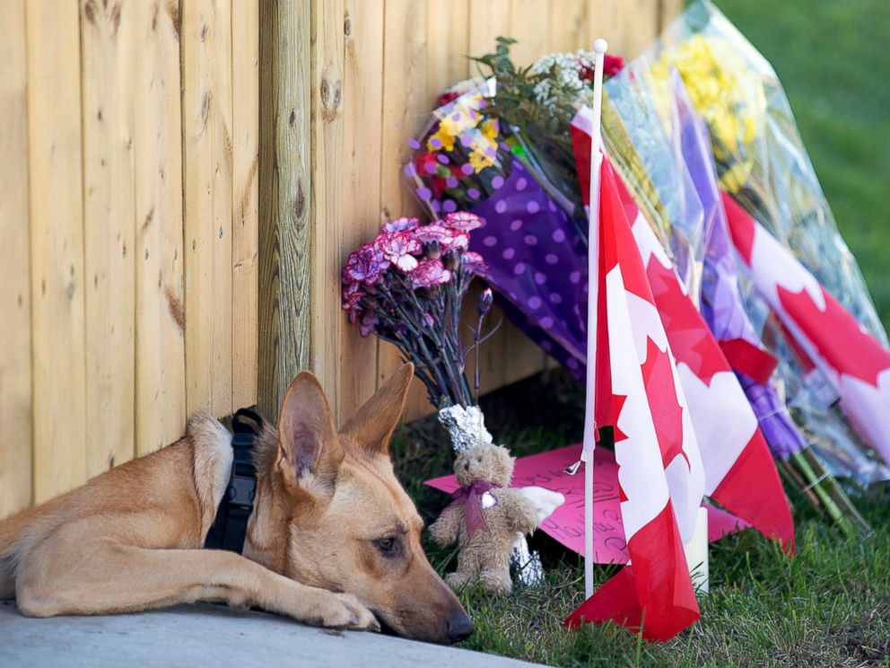 Quốc hội Canada quan sát thấy một khoảnh khắc của sự im lặng ngày hôm nay cho Cpl. Nathan Cirillo, 24 tuổi, người lính đã bị giết bởi một tay súng ở Ottawa hôm thứ Tư, trong khi ông đã được bảo vệ Đài tưởng niệm Chiến tranh quốc gia. Những người biết Cirillo cho biết cha và dự bị là một người yêu chó. Và hôm nay, tại nhà của gia đình Cirillo ở Hamilton, Ontario, một cảnh đau lòng diễn ra như hai con chó chăm chú nhìn dưới một cửa, nghỉ ngơi đầu của họ gần một cống hoa và cờ như thể thương tiếc người lính.