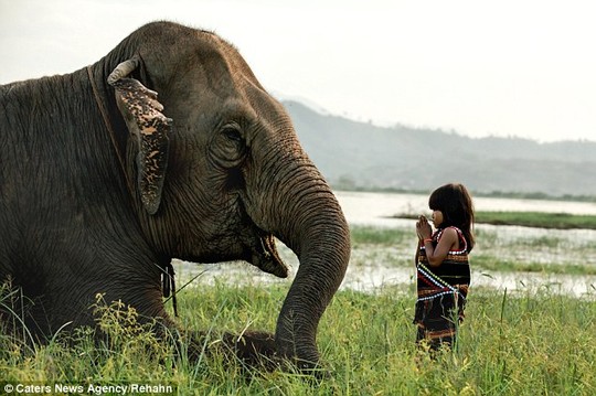 Dưới ống kính của nhiếp ảnh gia Pháp Rehahn, sự gắn bó đôi bạn thân – một bên là cô bé 6 tuổi Kim Luan, người dân tộc M’nông, và một bên là chú voi khổng lồ, hiện lên vừa ấm áp vừa ấn tượng.