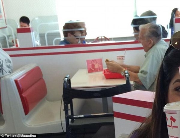 Theo Dailymail, người ta bắt gặp hình ảnh này khá nhiều lần ở một quán ăn tại California. Theo tìm hiểu, bức ảnh mà cụ ông luôn mang theo mình chính là ảnh người vợ đã mất cách đây 5 năm.