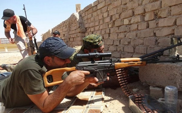 Lực lượng an ninh Iraq trong một trận giao tranh với quân IS ở ngoại ô thành phố Ramadi. (Ảnh: Reuters)
