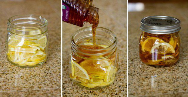 Chuẩn bị: Trong lọ thủy tinh đặt các lát chanh và cho mật ong và gừng qua chúng. Đóng lọ và đặt trong tủ lạnh cho đến khi gừng và chanh tan ra, hỗn hợp trở thành như thạch.
