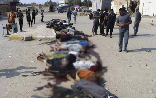 Hôm thứ Tư, chúng đã bắt 30 chiến binh người Sunni tập trung ở quảng trường tại thành phố Hit và bắn chết họ ngay trước mặt người dân, sau đó chất xác họ vào một nấm mộ tập thể.