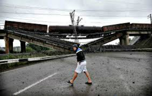 | Cầu đường ray bị phá hủy vì đạn pháo |