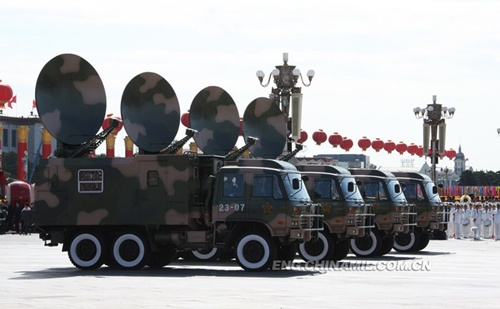 Các xe phát tín hiệu của quân đội Trung Quốc diễu hành tại Quảng trường Thiên An Môn, Bắc Kinh năm 2009. Ảnh minh họa: Chinamil