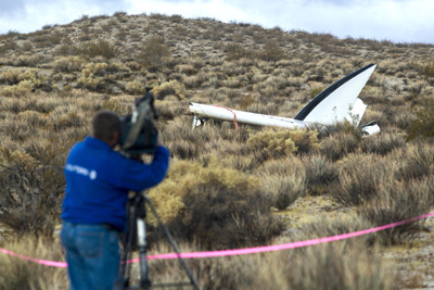 Một mảnh vỡ của phi thuyền Virgin Galactic. (Hình: AP/Photo)
