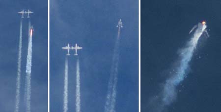 SpaceShipTwo được máy bay mang lên độ cao 13.500m trước khi thả để khởi động tên lửa đẩy, và phát nổ