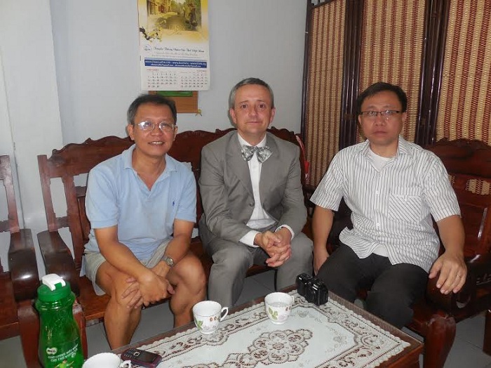 Ông Emmanuel Ly Batallan, TLS Pháp đang trong nhà thân mẫu chụp hình chung với GS. Hoàng và TNCT Truyển