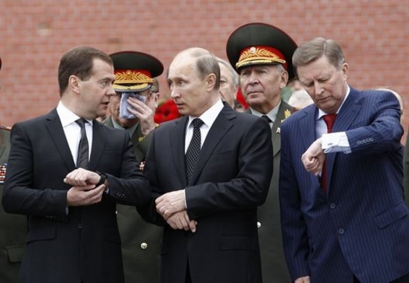 Chánh văn phòng Ivanov (bìa phải) cạnh Tổng thống Vladimir Putin