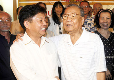 Tờ Sài Gòn Giải Phóng đón tiếp ông Tô Hòa (phải), cựu Tổng Biên tập. Tờ báo này vừa chỉ trích ông Hòa và 60 người khác mượn danh nghĩa “yêu nước” và “trung thành”. (Hình: SGGP)