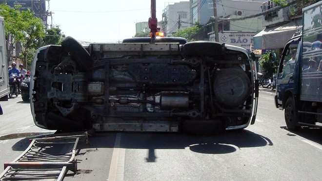 Old  Default Ôtô lật ngang giữa đường, hai người may mắn thoát nạn