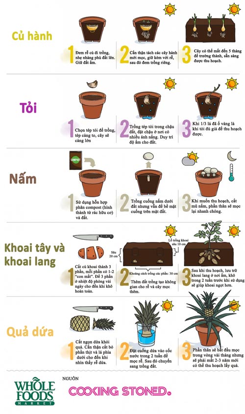Với những loại thực phẩm sẵn có trong nhà, các mẹ có thể trổ tài trồng những loại rau củ an toàn cho cả gia đình trong thời gian ngắn