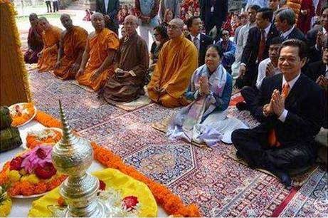 Nhưng nụ cười của Sếp khiến đám đệ tử mặc vét cự cãi nhau inh ỏi.: Sao Thủ Trưởng lại cười banh háng ra khi vào chốn cửa Phật nhỉ...