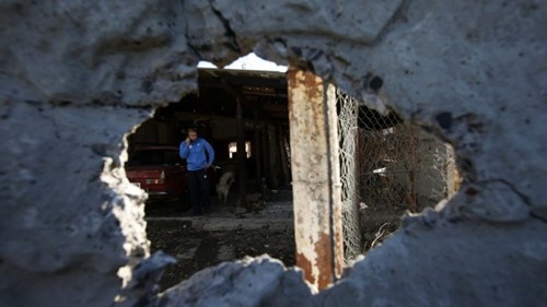 Một ngôi nhà bị trúng đạn pháo ở Donetsk.