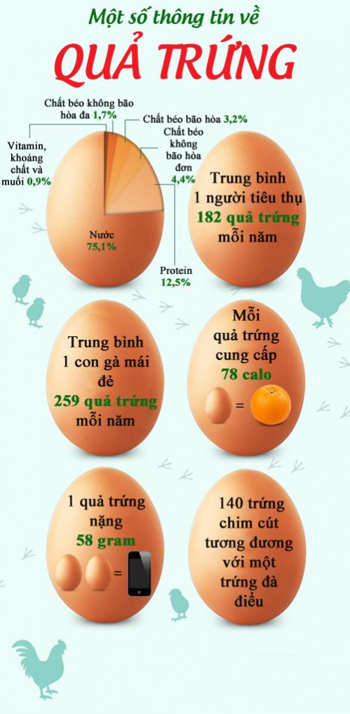 Trung bình một người tiêu thụ 182 quả trứng mỗi năm; 140 trứng chim cút tương đương với một trứng đà điểu.