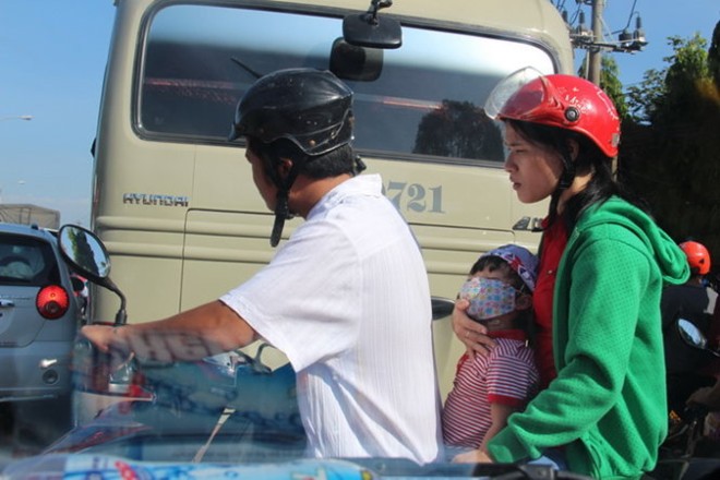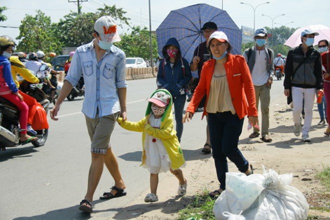 Trên quốc lộ 13 đoạn tiếp giáp giữa TP.HCM và Bình Dương, nhiều người đi xe máy từ TP.HCM tới đây thấy tình trạng kẹt xe và nắng nóng nên đã chủ động quay đầu xe ra về.