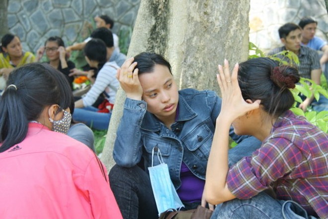 Nhiều nhóm công nhân tỏ ra mệt mỏi sau khi vào khu du lịch.