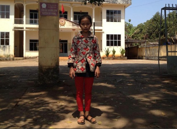 Bé Ngô Thị Cẩm Hiếu chụp trước Toà án huyện Bù Đăng, tỉnh Bình Phước trong phiên sơ thẩm ngày 25/2/2014/Photo courtesy of danlambao
