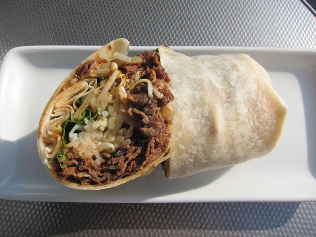 Các ức là hương vị, và việc cắt giảm và kết cấu của thịt nhắc nhở chúng ta một cái gì đó chúng ta sẽ tìm thấy trong một Burrito carne Asada. Nó quen thuộc trong ý nghĩa đó, nhưng nó là duy nhất để có được nếm thử hương vị phở ướp lát thịt bò. Các món mì gạo là một lựa chọn đáng ngạc nhiên tốt đẹp để gạo thường xuyên (và không ủy mị ở tất cả như chúng ta tưởng tượng nó có thể được), và kết cấu của giá đỗ thêm một cuộc khủng hoảng tốt. Đây là một Burrito cay (vì vậy bạn có thể muốn chọn ra một jalapeno lát hoặc hai nếu nó không phù hợp với bạn).