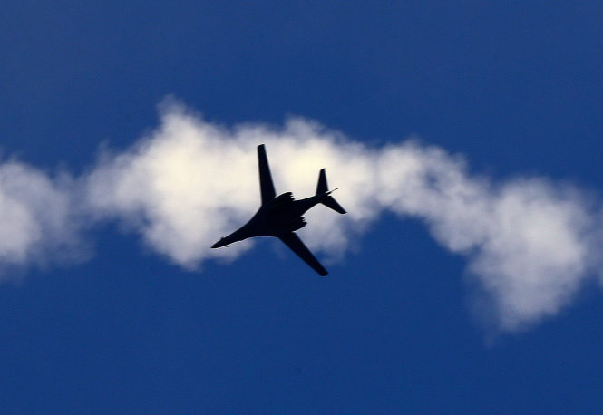 Máy bay ném bom B-1 của liên quân Mỹ bay trên bầu trời thị trấn Kobani ở Syria - Ảnh: Reuters
