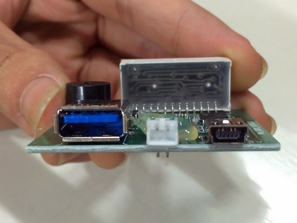 3 cổng kết nối từ trái qua là microUSB giúp thiết bị kết nối với máy tính và sử dụng một phần mềm đặc biệt, cổng kết nối ở giữa giúp thiết bị kết nối với cảm biến và cổng kết nối USB ngoài cùng bên phải giúp kết nối trực tiếp với iPhone.