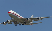 Đây là chuyên cơ chở Thủ tướng Nhật Bản. Chiếc 747 trong ảnh, đang chuẩn bị hạ cánh xuống sân bay quốc tế ở thành phố Brisbane, Australia, để Thủ tướng Shinzo Abe tham dự G20, thuộc loại 747-400. Nhật có hai máy bay dùng cho Nhật hoàng và thủ tướng. Những máy bay trên hoạt động dưới tín hiệu cuộc gọi Cygnus One và Cygnus Two. Ảnh: News Corp Australia.