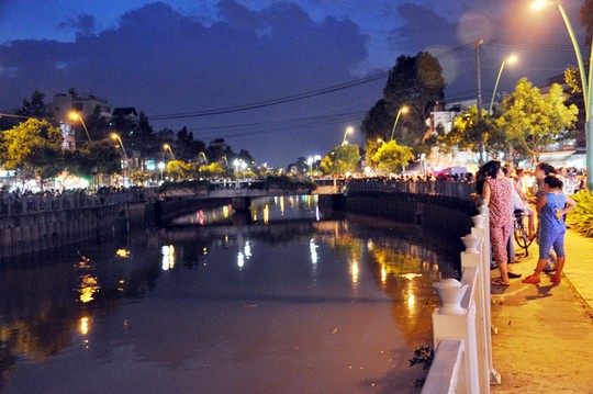 Người dân hiếu kỳ tụ tập ven bờ kênh